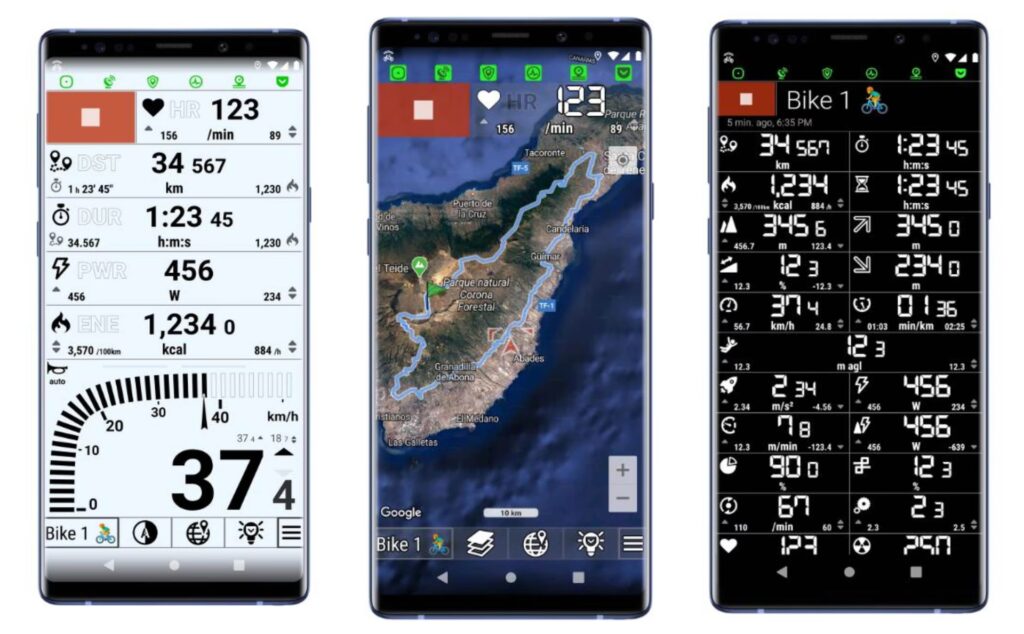 - Velocidad: No solo la velocidad actual, sino también la velocidad media y, a menudo, la velocidad máxima alcanzada durante la ruta.