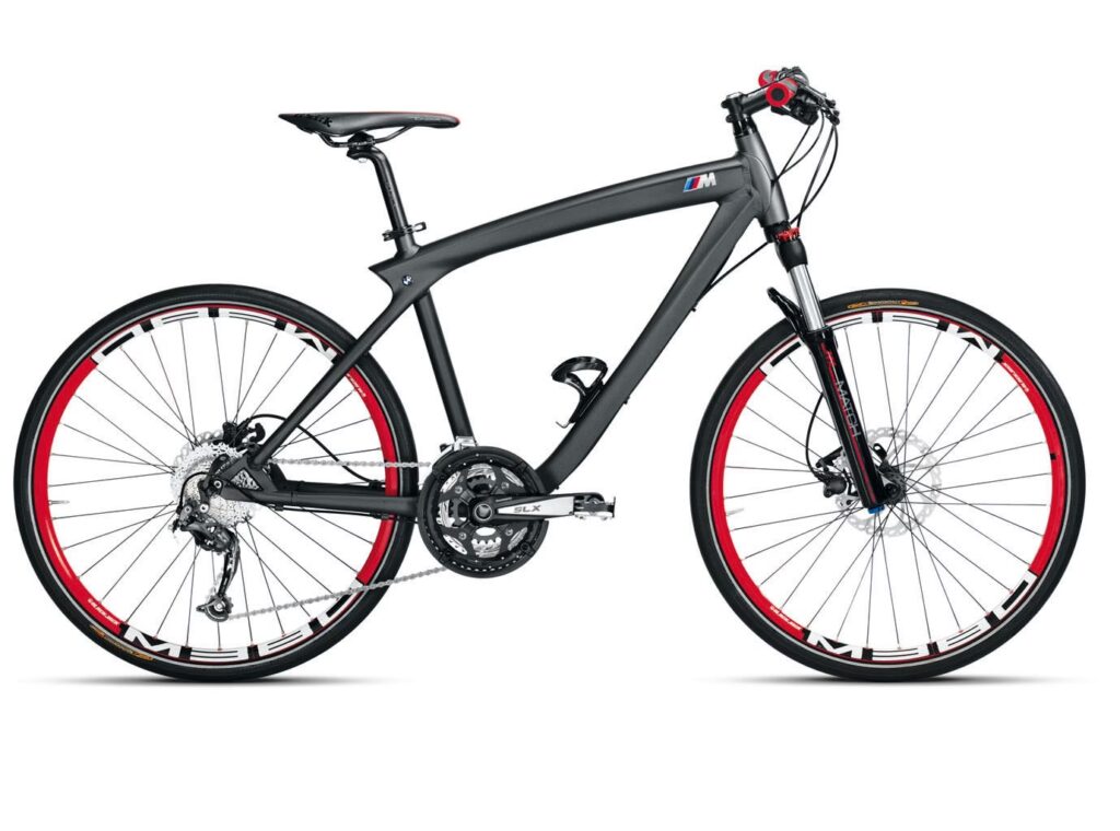 Inspirada en la división de coches de rendimiento M, la bicicleta BMW 'M' es más deportiva que otros modelos de la compañía. Presenta un cuerpo negro mate con franjas en el esquema de colores de M motorsport. La bicicleta tiene un diseño ligero que incluye espaciadores, tijas de sillín y una horquilla hecha de fibra de carbono, además de un grupo Shimano SLX/XT con once marchas.