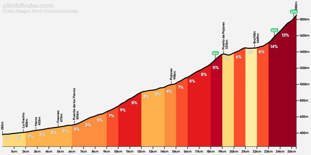 Ascender el Cuitu Negru es enfrentarse a un gigante de la montaña. Es una experiencia que pone a prueba los límites físicos y mentales. Desde sus suaves inicios hasta sus temidos kilómetros finales con rampas que parecen desafiar la lógica, cada metro es un paso más hacia la consecución de una hazaña. Es un puerto que ha grabado su nombre en la historia reciente del ciclismo español gracias a su aparición en La Vuelta, y que sigue siendo un objetivo para aquellos ciclistas que no se conforman con ascensos convencionales. Si buscas un reto mayúsculo en la cordillera Cantábrica, el Cuitu Negru te espera, prometiendo sufrimiento, pero también la inmensa satisfacción de haber conquistado una de las ascensiones más duras y espectaculares.