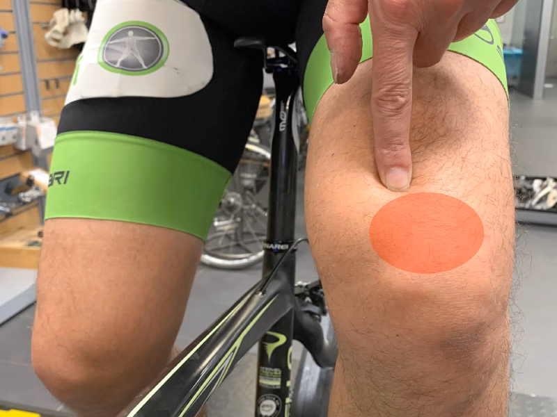 | Lateral (Parte externa de la rodilla) | Calas rotadas incorrectamente (pie apuntando hacia adentro o hacia afuera), sillín demasiado alto, banda iliotibial tensa, discrepancia en la longitud de las piernas. |