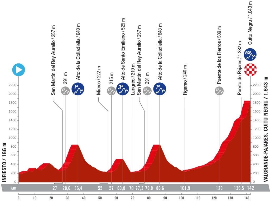 El punto clave de la jornada era la ascensión final a la estación de esquí de Manzaneda, un puerto de 15,4 kilómetros al 4,7% de desnivel promedio, con el tramo más duro en su parte final. Este perfil hacía que la victoria fuera probable para un ciclista de la fuga que lograra coronar la subida con suficiente ventaja.