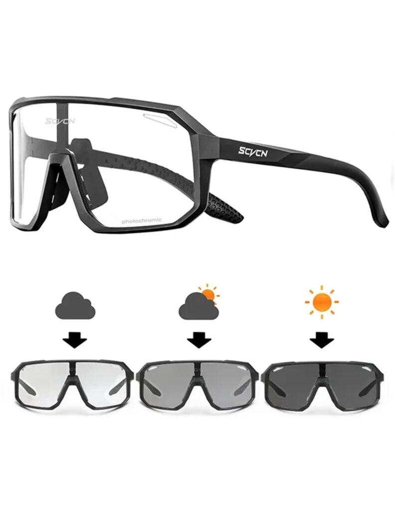 - Adaptabilidad Constante: Como ciclista, te enfrentas constantemente a cambios en las condiciones de luz: salir de un túnel, entrar en una zona arbolada, pasar de un día nublado a uno soleado. Cambiar de gafas constantemente es incómodo y poco práctico. Las lentes fotocromáticas se adaptan por sí solas, permitiéndote mantener una visión óptima sin interrupciones.