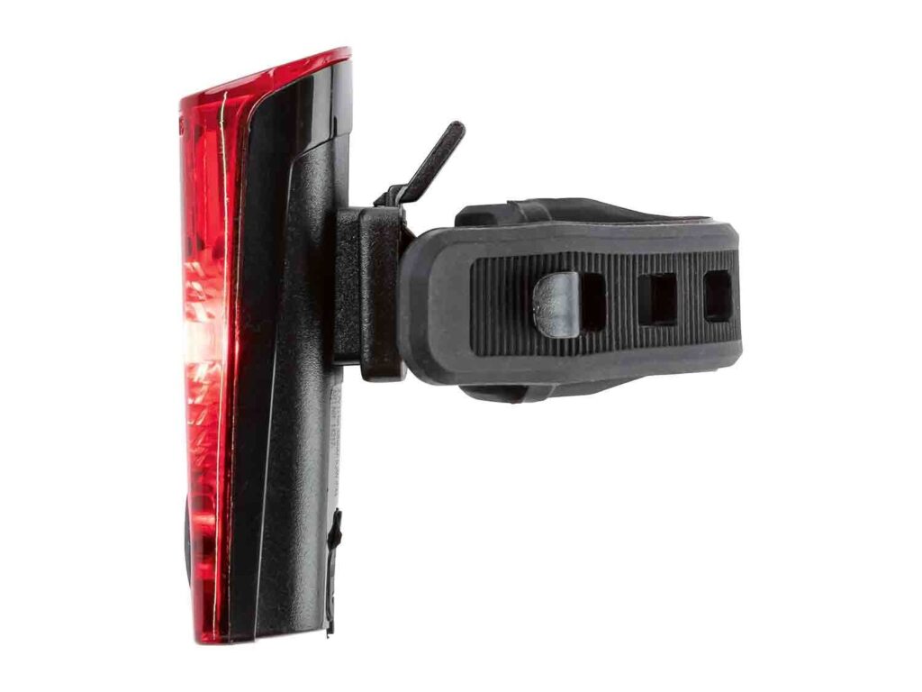 La luz trasera de este set es particularmente innovadora. Mientras que muchas luces traseras baratas (y no tan baratas) se montan en la tija del sillín y, debido a su diseño, proyectan la mayor parte de la luz hacia abajo (iluminando principalmente la rueda trasera), la luz de Lidl resuelve este problema inteligentemente.