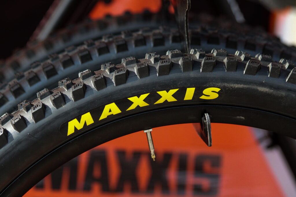 - Maxxis Assegai (Delante): Diseñado en colaboración con la leyenda del descenso Greg Minnaar, el Assegai presenta un patrón de tacos agresivos y espaciados que proporcionan un agarre y control excepcionales en una amplia variedad de condiciones, incluyendo terreno suelto, embarrado y técnico. Los tacos altos del Assegai ofrecen una excelente tracción de frenado, estabilidad inspiradora de confianza en las curvas y un manejo predecible, lo que lo hace ideal como neumático delantero donde el control es primordial. Su diseño se basa en la combinación de tacos de varios de los neumáticos más exitosos de Maxxis, creando un neumático que sobresale en casi cualquier situación.