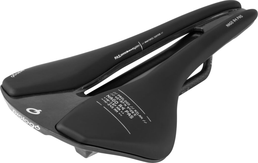 • PAS (Perineal Area System): Este sistema es la respuesta de Prologo a uno de los problemas más comunes en el ciclismo: la presión en la zona perineal. El PAS implica un canal o recorte en la base del sillín diseñado para aliviar la presión sobre los tejidos blandos, los nervios y los vasos sanguíneos. Al reducir esta presión, se previene el entumecimiento y las molestias, permitiendo al ciclista mantener una posición aerodinámica durante más tiempo y con mayor comodidad, lo cual es vital tanto para el rendimiento como para la salud a largo plazo.