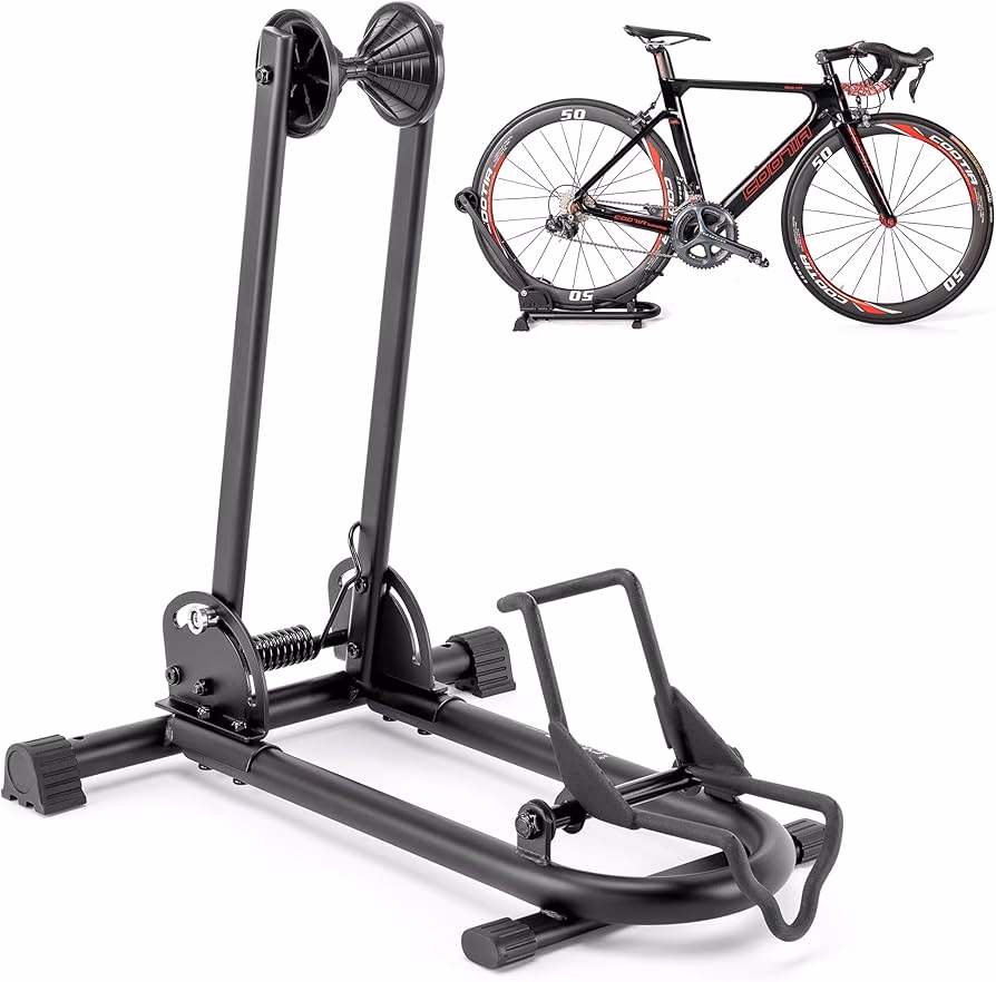 - Soportes de suelo: Simplemente la bicicleta se apoya o encaja en una base en el suelo. Son fáciles de usar y no requieren instalación en la pared o el techo.