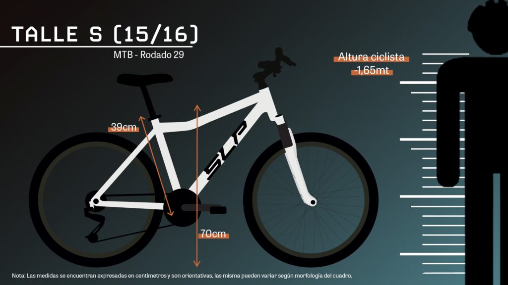 • Cross-Country (XC): A veces se prefiere una bicicleta ligeramente más grande dentro del rango recomendado para una mayor eficiencia de pedaleo y estabilidad a alta velocidad.