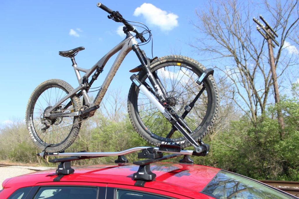 Almacenarlos de lado no es una opción práctica ni segura para la gran mayoría de portabicicletas de techo Thule.