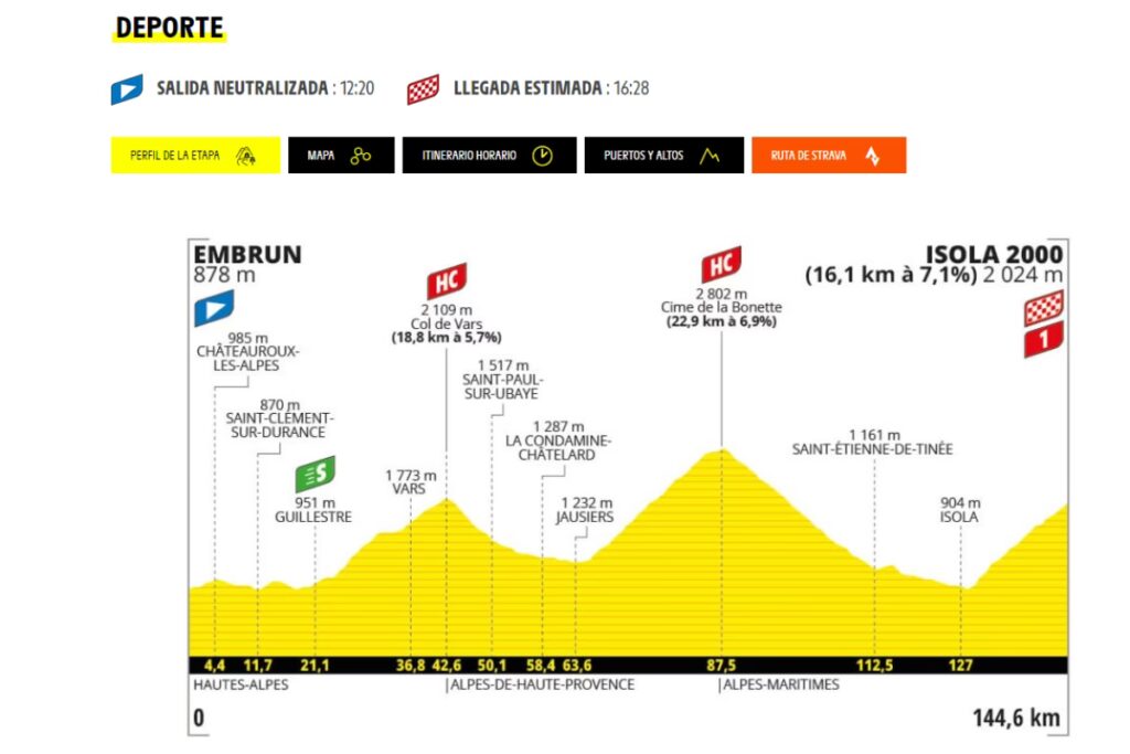La contrarreloj final abarca una distancia de 33,7 kilómetros, un recorrido exigente que pondrá a prueba a cada ciclista de forma individual. A diferencia de las etapas en línea donde el trabajo en equipo es crucial, aquí cada corredor está solo frente al cronómetro, luchando por cada segundo en el asfalto. La salida desde Mónaco y la llegada a Niza añaden un toque de glamour y prestigio a esta etapa decisiva.